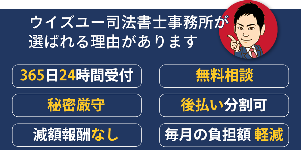 よって、ウイズユー司法書士事務所では、合法的に債権者からの取り立てをストップさせることができますのでご安心下さい。